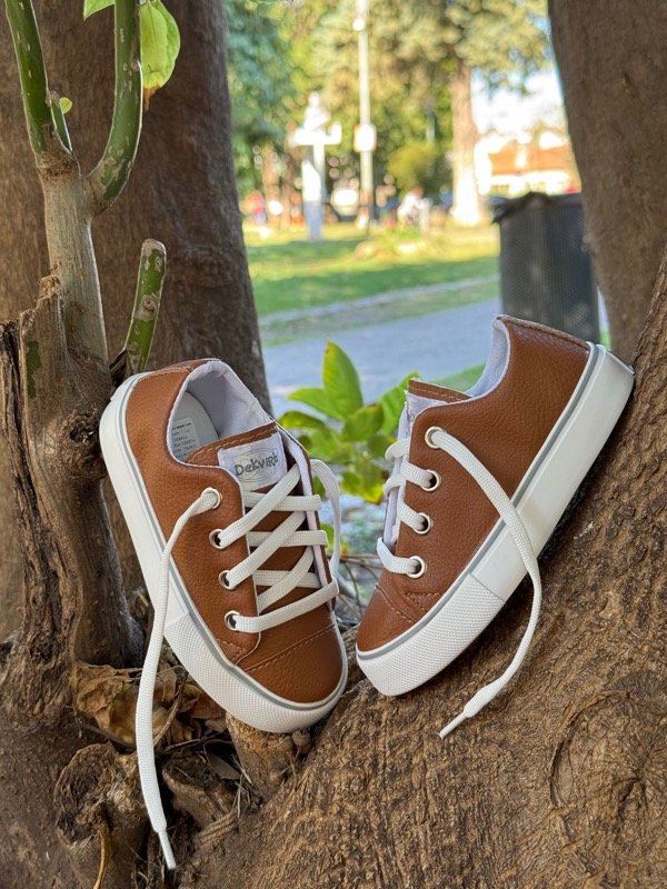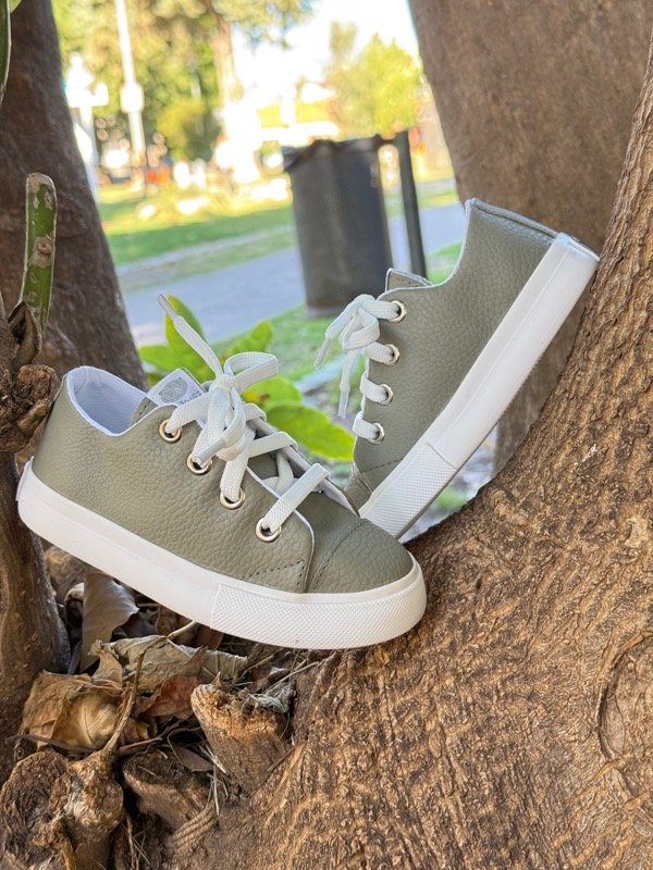 Zapatilla ecocuero con forro de lona, puntera del mismo material.