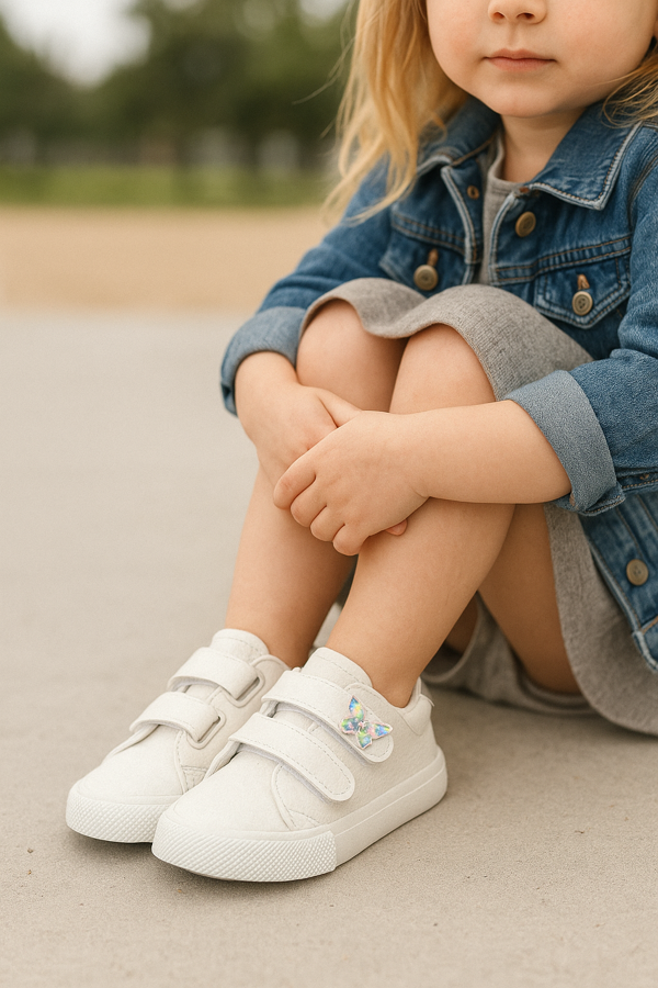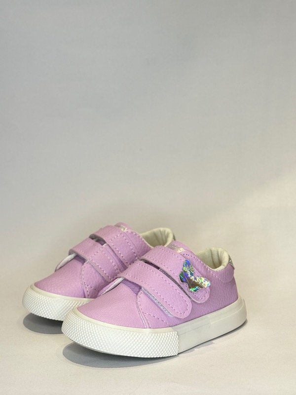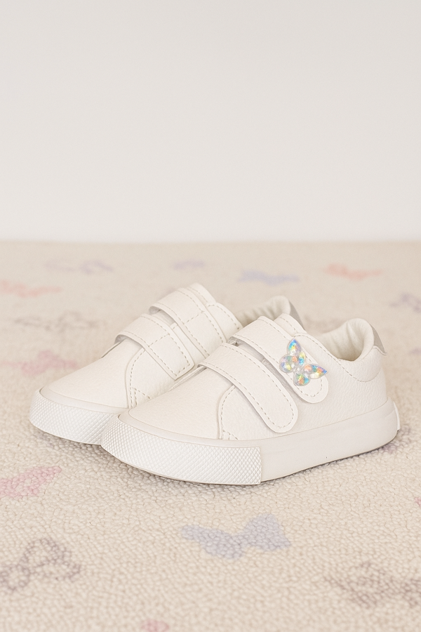 Zapatilla con doble abrojo de ecocuero y aplique de mariposa