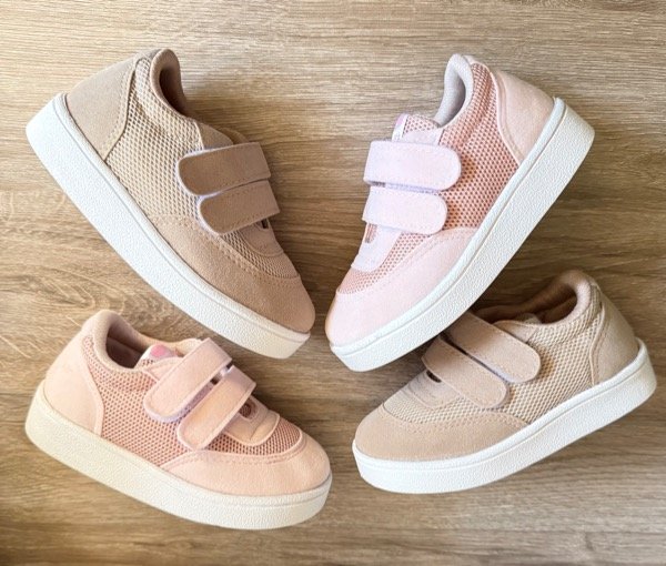 Zapatilla con dos abrojos y apliques en gamuza, base campus, ultra liviana.