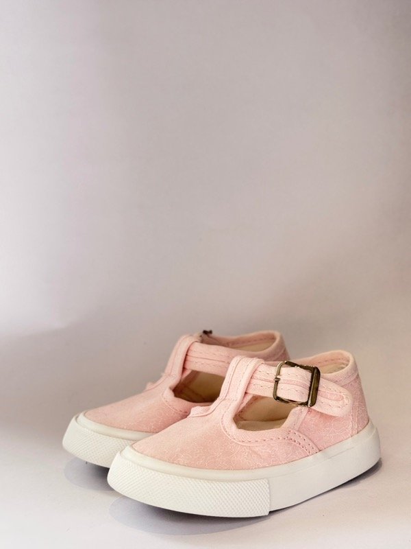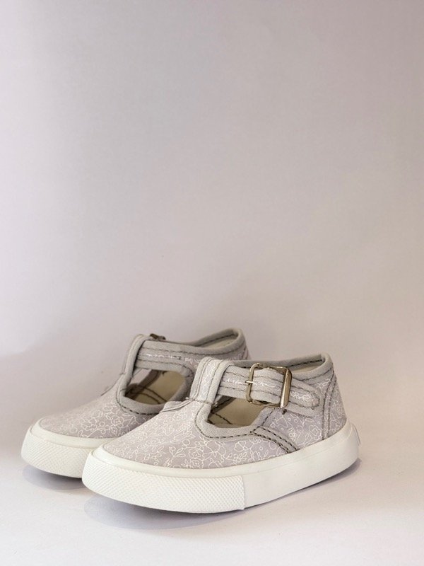 Guillermina de tela estampada con hebilla, suela antideslizante.
