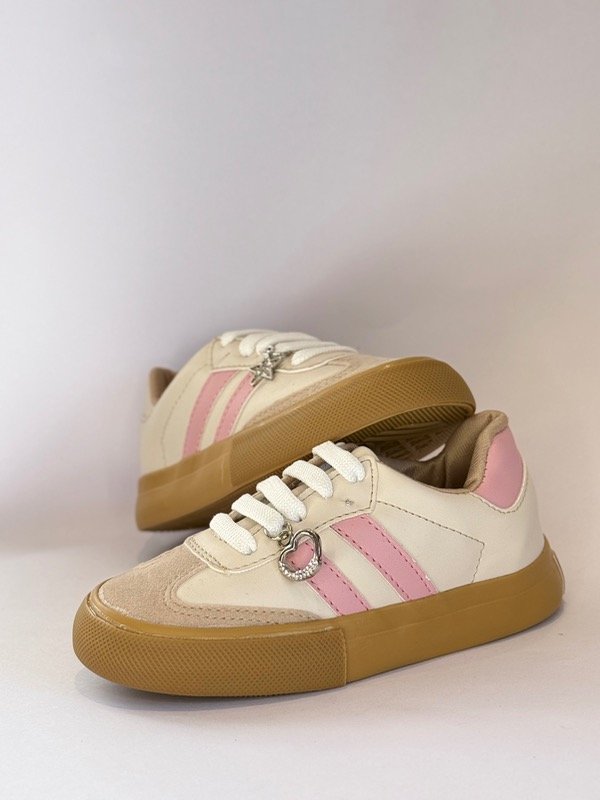 Zapatilla en ecocuero con puntera de gamuza y tiras, suela antideslizante.