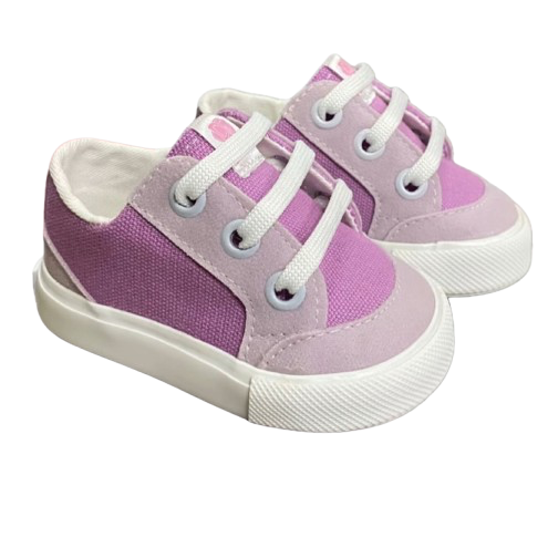 Zapatilla en lona con apliques en gamuza, suela antideslizante.
